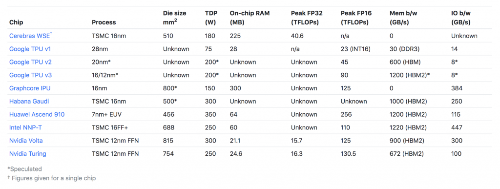 Figure 1. Key specification of representative ML accelerators (figure from “New Chips for Machine Intelligence”)