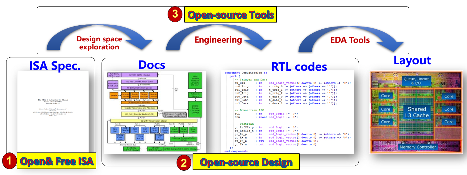 Figure 1. Open Source Chip Ecosystem = Open&Free ISA + Open-source Design + Open-source Tools