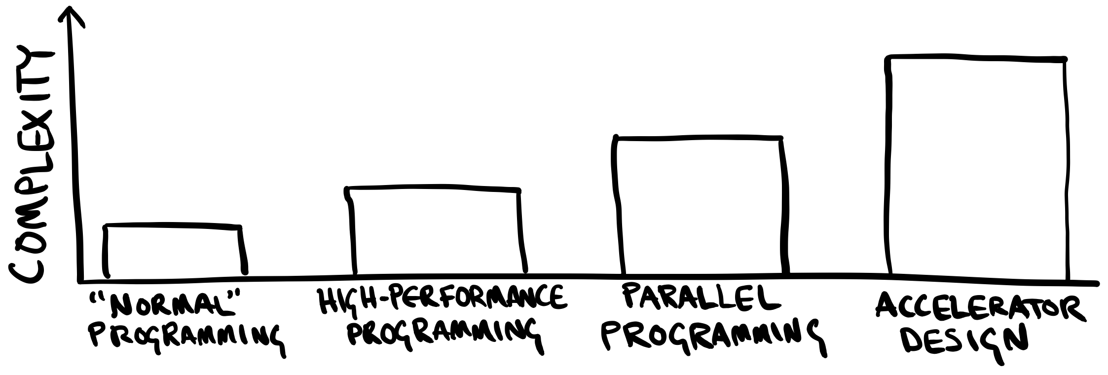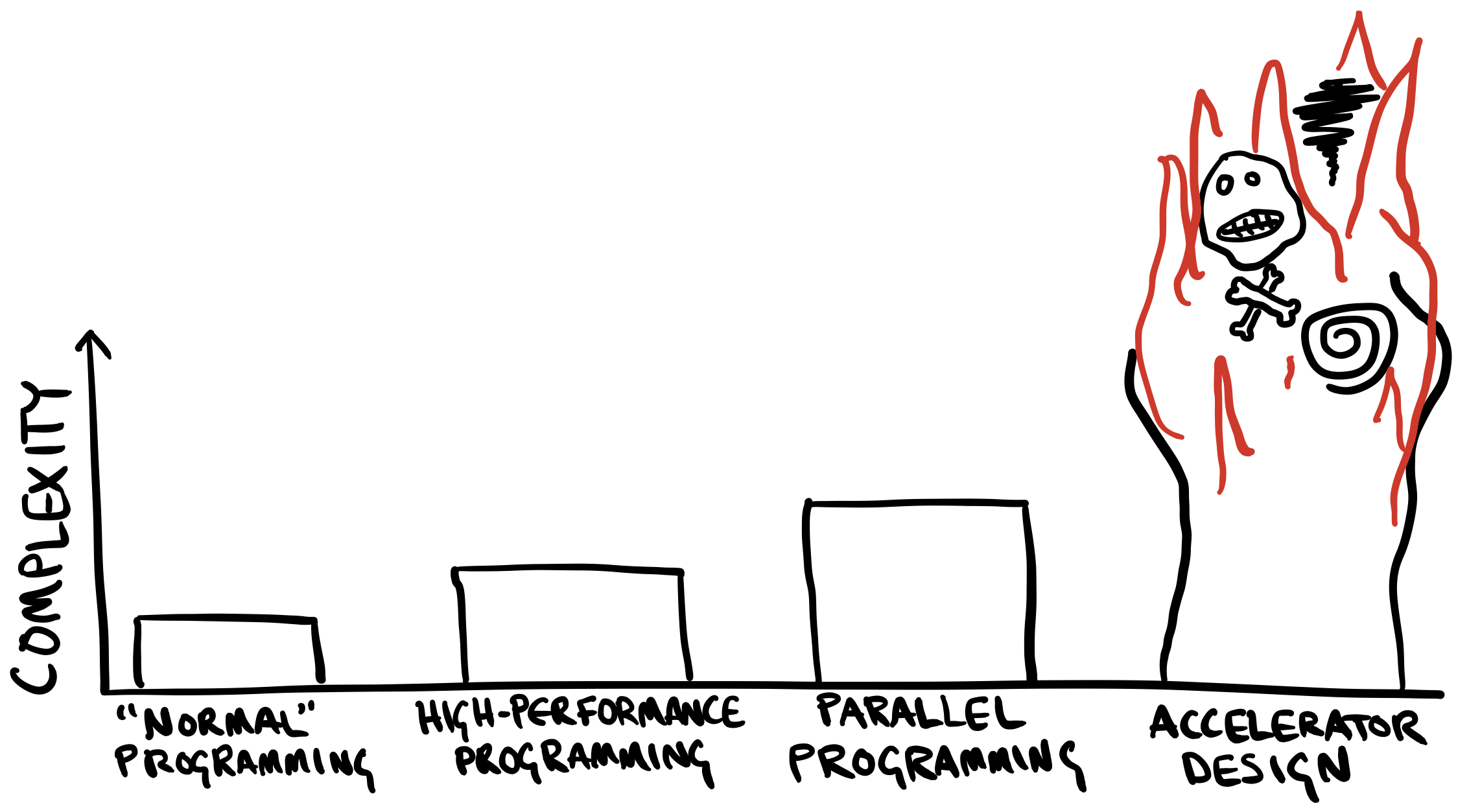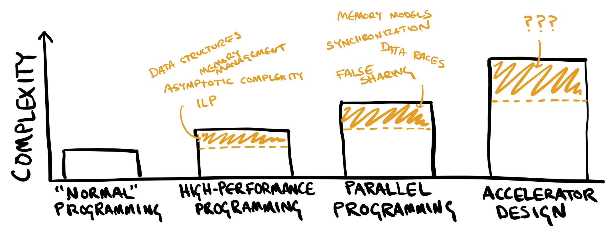 Two kinds of factors make accelerator design hard today: there is essential complexity that is truly fundamental to the problem, and there is accidental complexity because the tools are bad. Accelerator design shares fundamental challenges with high-performance software programming, such as understanding cost models and grappling with parallelism, and adds a few more, such as contending with clock cycles and the freedom to customize memory hierarchies.