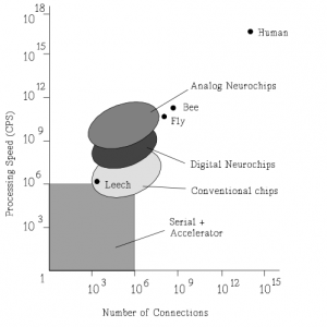 And the table had missed several platforms that are worth checking out: NETSIM (Texas Instruments and Cambridge University, UK), SYNAPSE-1 (Siemens AG, Corp, R&D, Germany), CNAPS (Adaptive Solutions, Inc., USA), SNAP (HNC, CA, USA), LNeuro 1.0 (Neuromimetic Chip, Philips, Paris, France), Mantra I (Swiss Federal Institute of Technology), ZISC036 (IBM Microelectronics, France), ETANN (Intel Inc., CA, USA), SAIC SIGMA-1 (Science Applications International Corporation), NT6000 (Neural Technologies Limited, HNC, and California Scientific Software), Balboa 860 (HNC, CA, USA), Ni1000 Recognition Accelerator Hardware (Intel Corp), NBS (Micro Devices, FL, USA), Neuro Turbo I&II (Nagoya Institute of Technology, Mitec Corp., Japan), WISARD (Imperial College London, UK), Topsi (Texas Instruments, USA), DREAM Machine (Hughes Research Laboratories, CA, USA).
