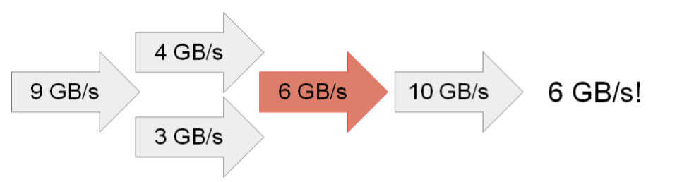 Bottleneck Analysis can yield an upper bound on the throughput (bandwidth) of a system from the throughput of its subsystems. It provides a quick calculation for what a system may or can’t do. If throughput is bottlenecked too low, no amount of buffering or other latency-reducing techniques can help.