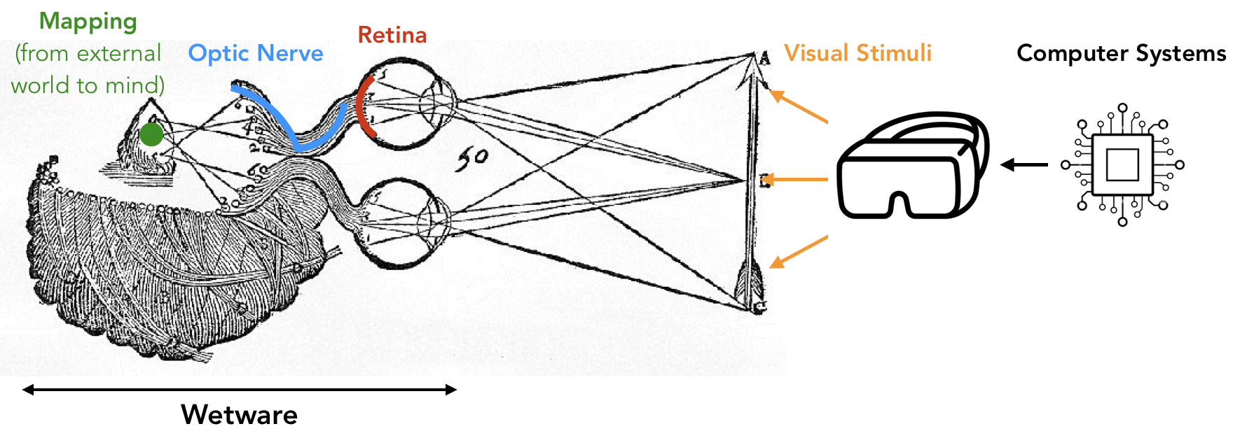I sometimes wonder if the anatomical observations at least indirectly influenced his famous framing of ā€œI think, therefore I amā€: maybe the flow of fluids convinced him of the existence of consciousness and, thus, being. In any case, modern neuroscience undoubtedly points out that external visual stimuli directly affect the internal processing throughout the visual pathway, which I will loosely refer to as the wetware. In this sense, we, computing systems designers, can directly modulate human visual perception (HVP) — even without implanting a device into the human brain.